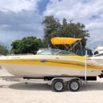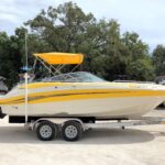 Very nice and clean inside kept boat. Powered by Mercruiser 350 MPI MAG motor. 437 hours. Hull like new. Never been in accident, never sunk. Interior is brand new professionally reupholstered in August 2018. Loaded with many options. -Two showers front and back-Sink-Bimini top-Snap-on cover.Trailer 2015 Magic Tilt with brakes....