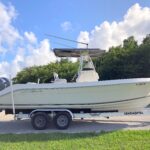 Nice and clean boat. Powered by twin Yamaha 150HP 4 STROKE motors. Low 489 hours. Good condition, no damage hull.Clean interior. Cushions are in good shape no sun damage, no rips or tears. -T-top-Outriggers-Two new batteries-Stereo-Livewell-Fishboxes-Trailer included Please see pictures. -WE DELIVER! In USA our sipping fee will range from $0.50 to $1.50 per...
